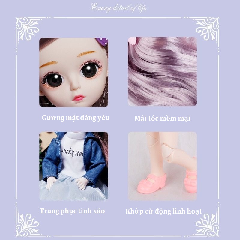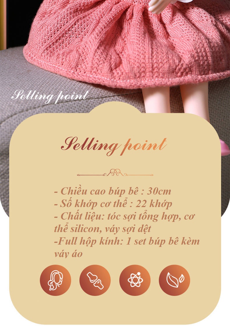 Búp bê với 22 khớp, có thể tạo mọi tư thế sẽ là người bạn thân thiết với bé, cùng bé thực hiện giấc mơ công chúa