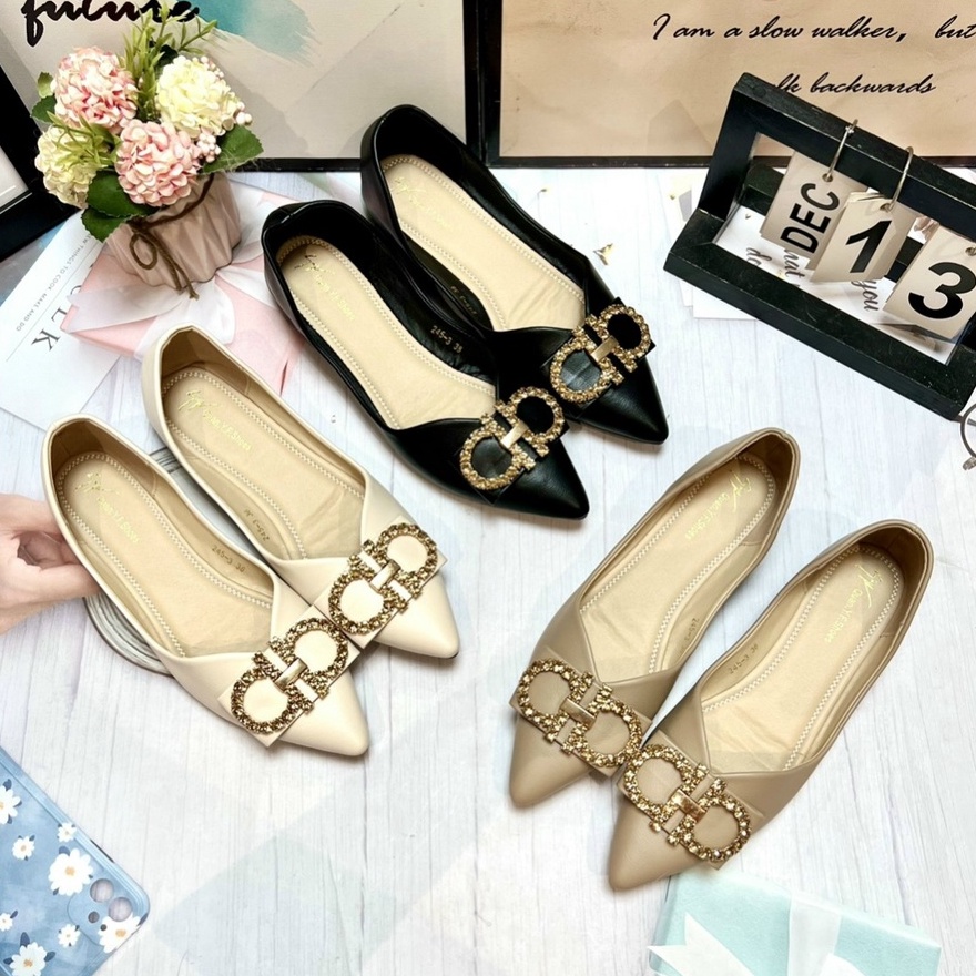 Giới thiệu BÚP BÊ ĐÍNH NƠ ĐÁ - GIÀY BỆT DA MỀM ĐẾ ĐỘN 2P GIẤU GÓT 245-3