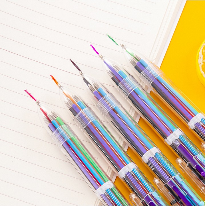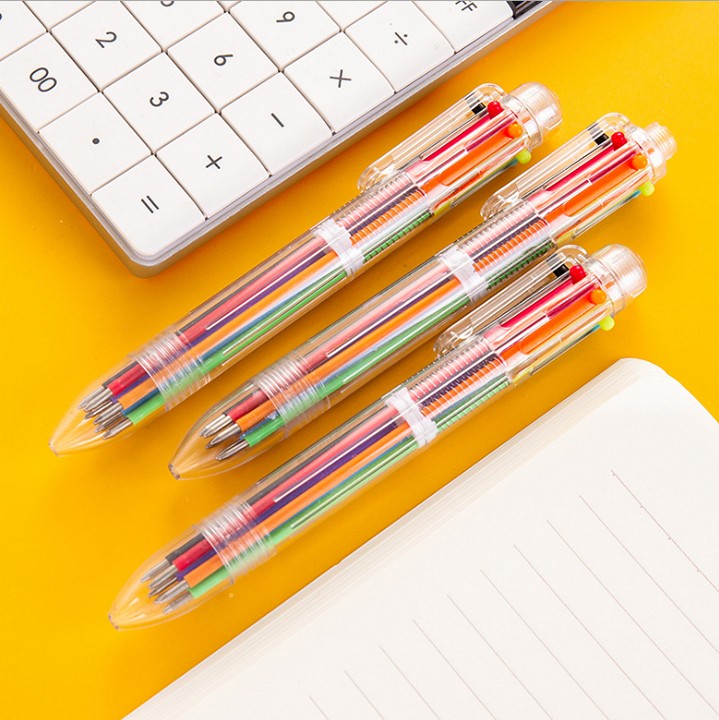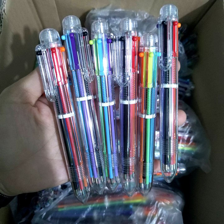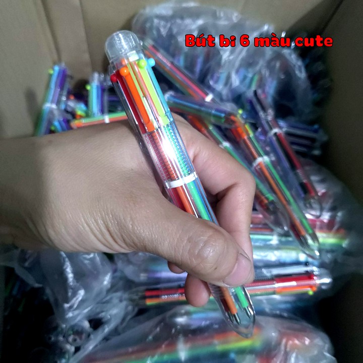 Bút bi 6 màu, 6 ngòi khác nhau, dùng nhiều trong văn phòng, học tập, ghi chú sản phẩm nhỏ gọn hình dáng dễ thương, phù hợp để mang để mang theo bên mình lúc cần thiết hoặc làm quà tặng.