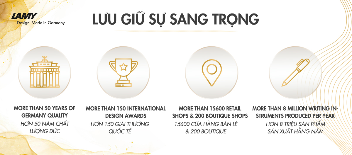 - Đặc biệt là khi có trợ thủ bút LAMY, một cây bút tốt không chỉ nằm ở vẻ ngoài, nét mực, ngòi bút mà còn là sự tỉ mỉ và tinh tế của người thiết kế về kích thước bút chuẩn phù hợp bàn tay người sử dụng để bạn luôn thoải mái sáng tạo, viết lên những những điều tuyệt vời cùng LAMY.