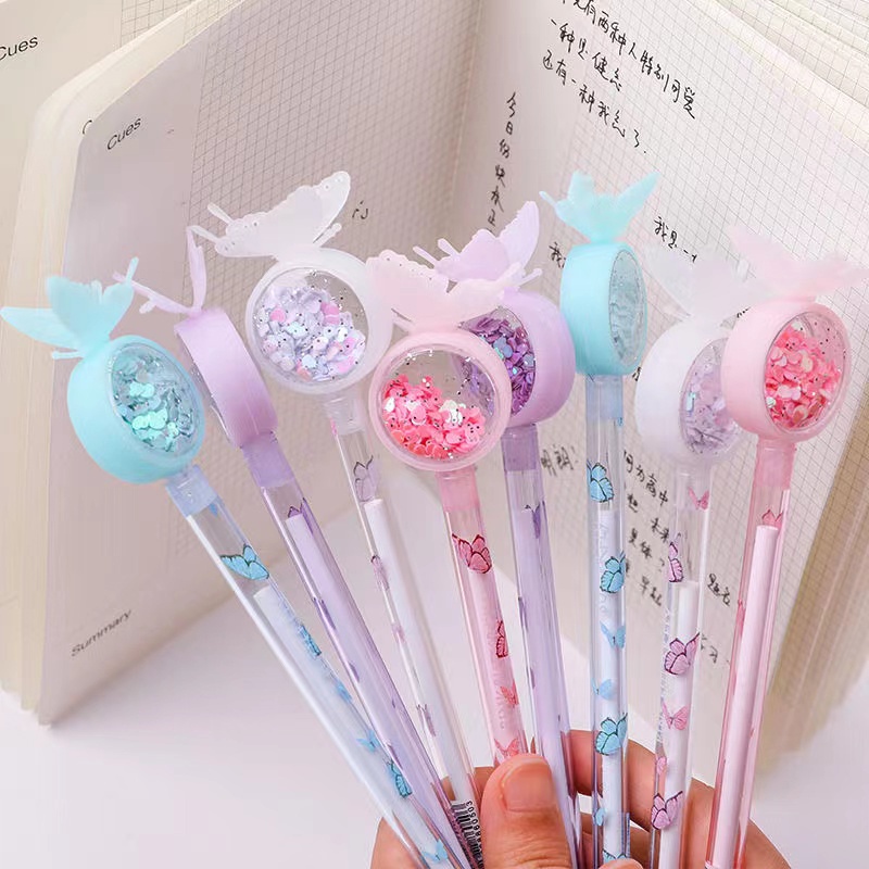 Bút bi nước nhũ chảy gel mực đen hình cánh bướm