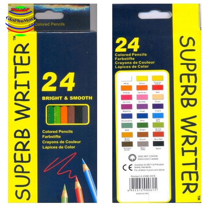 THÔNG TIN CHI TIẾT Bộ Chì Tô #24 #Màu #Superb #Writer 4100-24CB (Hộp Giấy) với 24 màu sắc sinh động và tươi sáng. Màu chì bền, đậm và sắc nét thích hợp để bé tập tô hoặc các em học sinh thực hành môn mỹ thuật. Marco là thương hiệu bút chì màu nổi tiếng đến từ Trung Quốc với các dòng sản phẩm được ưa chuộng trên 80 quốc gia. Bút chì màu Marco được rất nhiều các họa sĩ bán chuyên sử dụng và đánh giá cao về chất lượng. Cho đến nay, Marco là một trong những thương hiệu bút chì màu phổ biến nhất trên thế giới và đứng ở vị trí hàng đầu trong phân khúc bút chì màu chất lượng cao với giá cả phải chăng. Bút chì màu #Superb #Writer có độ mịn và màu sắc tươi sáng, giúp gia tăng độ phủ đến 100%. Bạn có thể phối trộn để tạo bóng, tạo màu mới, highlight... thoả thích với bộ màu này.