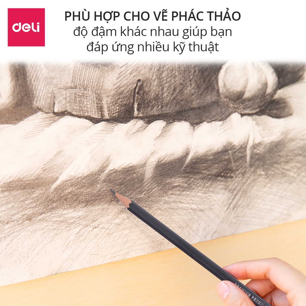Bút chì phác thảo phiên bản cao cấp Deli - 2H -> 8B - Dành cho mỹ thuật chuyên nghiệp độ đậm chuẩn S998 - Hộp 12 chiếc