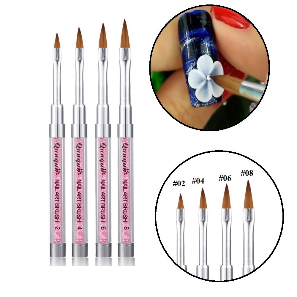 Cọ bút đắp hoa khi làm móng được ưa chuộ đầu bút lông mềm mướt để làm những bông hoa nổi, cánh tròn, cánh dài, những bông hoa ghép từng cánh rời