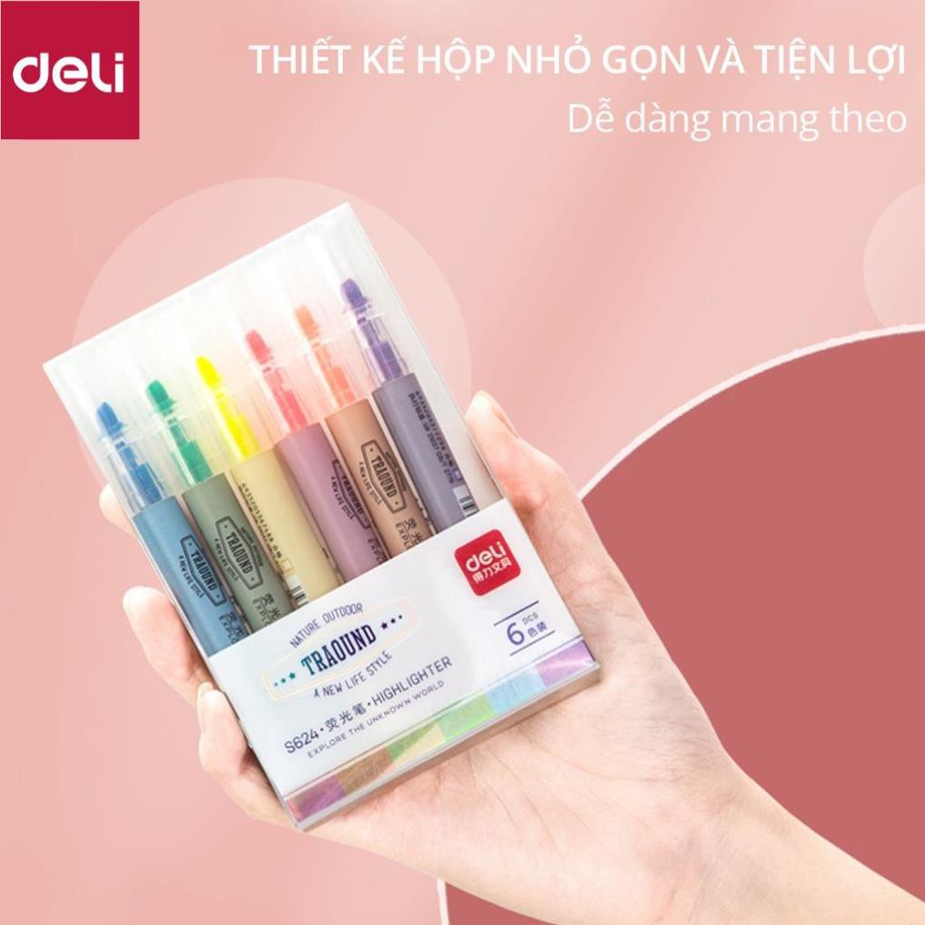 Giới thiệu Bút highlight dấu dòng dạ quang Deli – 6 chiếc/ hộp - S624 [Deli]