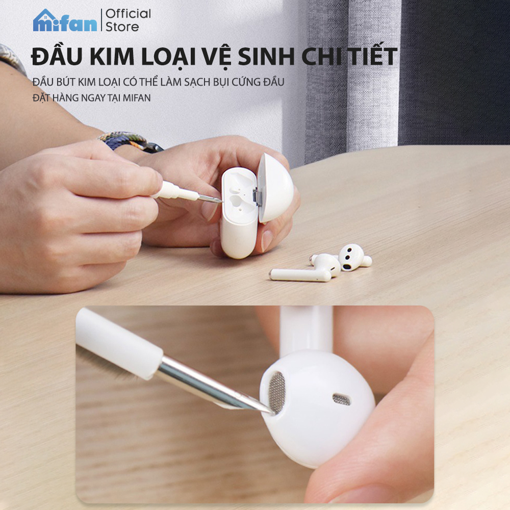 Bút vệ sinh tai nghe bluetooth Airpods 3 trong 1 cao cấp Mifan - Làm sạch bụi bẩn trong dock sạc, loa, cổng sạc