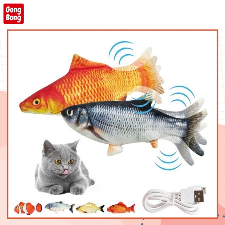 Con cá nhảy đồ chơi cho mèo có kèm sạc pin cá nhảy nhồi bông sạc điện USB Gong Bong Store