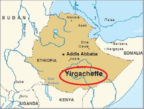 Vùng Yirgacheffe nằm ở phía nam của Ethiopia ở độ cao khoảng 1.900 mét so với mực nước biển.