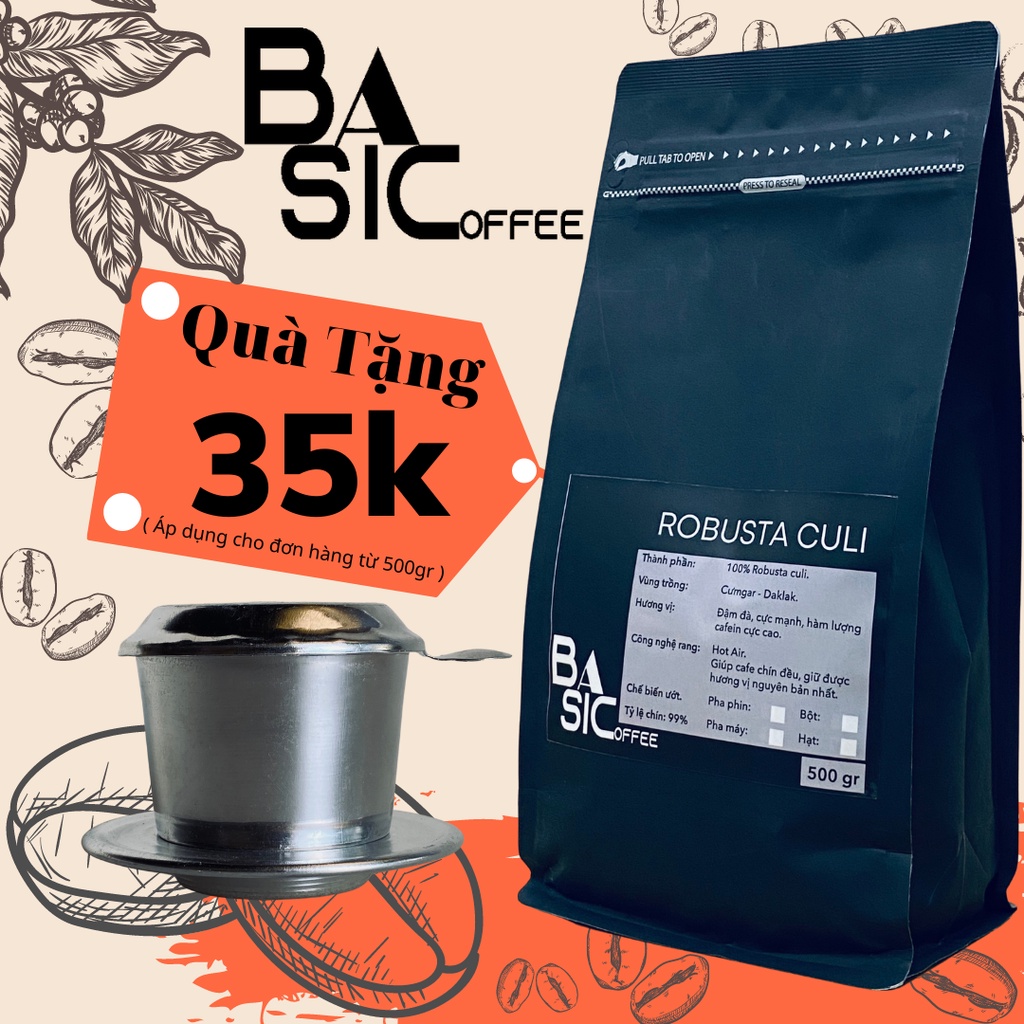 Giới thiệu Cà Phê Nguyên Chất Robusta Culi Rang Xay Mộc Cafe Sạch Đăk Lăk Bassic Coffee Gu Mạnh Đậm Đà Bột Pha Phin Pha Máy