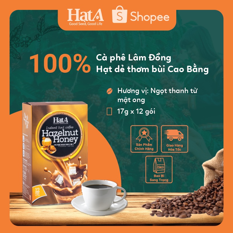 Giới thiệu Cà Phê Hòa Tan Hạt Arabica Nguyên Chất Hương Vị Hạt Dẻ Mật Ong 1 Hộp 12 Gói 204g