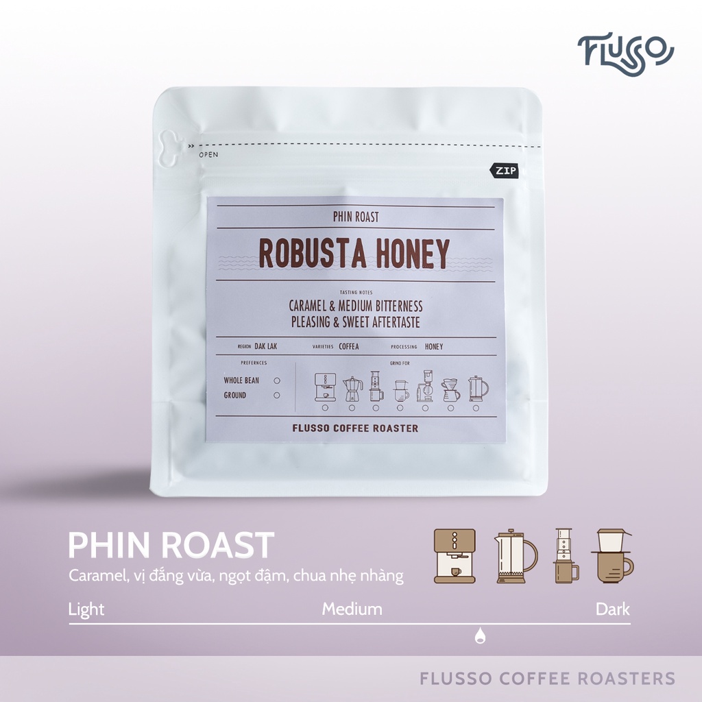 ĐÔI NÉT VỀ SẢN PHẨM CÀ PHÊ FLUSSO ROBUSTA HONEY PHIN ROAST