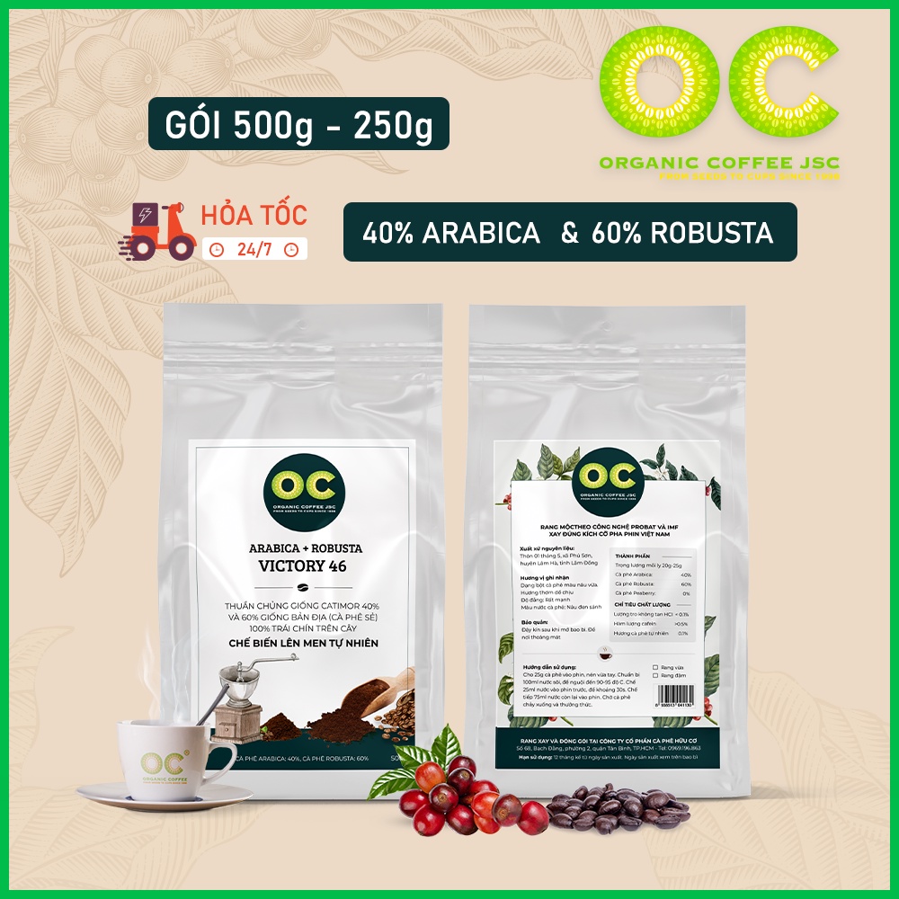 Thực phẩm và đồ uống > Đồ uống > Cà phê || Cà phê rang mộc hữu cơ nguyên chất Robusta Blend VICTORIA 46, Cafe pha phin/pha máy nguyên chất từ Organic Coffee JS