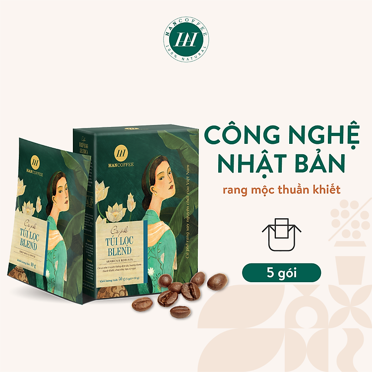 Cà Phê Phin Giấy Túi Lọc HANCOFFEE Drip Bag Blend Hương Hoa Và Thoảng Mùi Trái Cây Vị Đắng Nhẹ, Ngọt Sâu Hộp 5 gói - HND2S