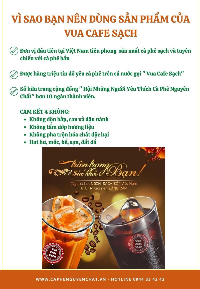 Cảm ơn bạn đã tin tưởng và đồng hành cùng NGUYEN CHAT COFFEE & TEA – VUA CAFE SẠCH. Chúng tôi không ngừng cải tiến chất lượng sản phẩm và dịch vụ.