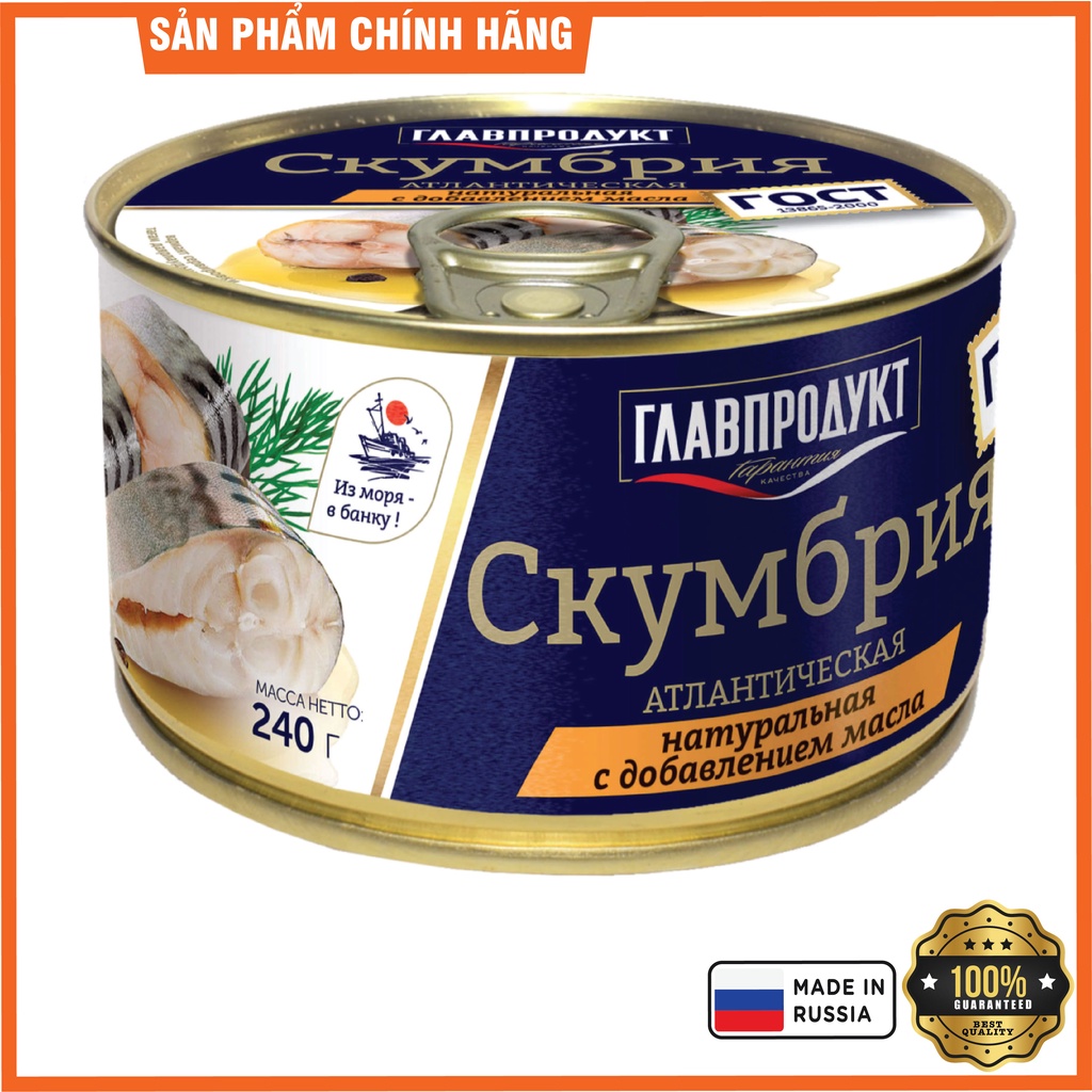 Giới thiệu Cá thu đại tây dương đóng hộp Glavproduct 240g (NK Nga)
