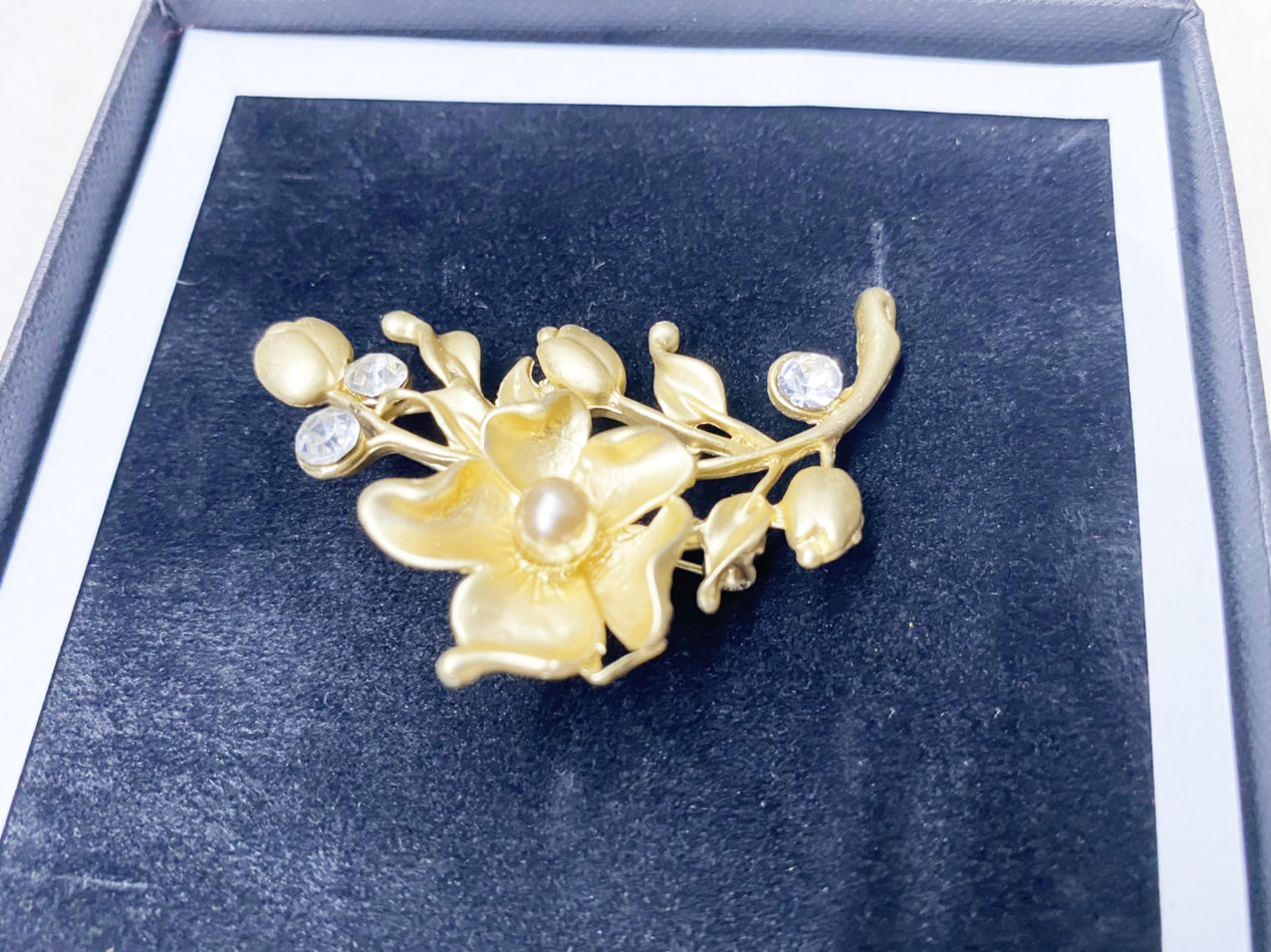 Cài áo nhánh hoa mai đính ngọc kim loại màu vàng sang trọng