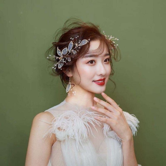 Phụ Kiện Thời Trang > Phụ kiện tóc > Cài tóc, vương miện cài tóc || Cài hoa cô dâu kèm bông tai