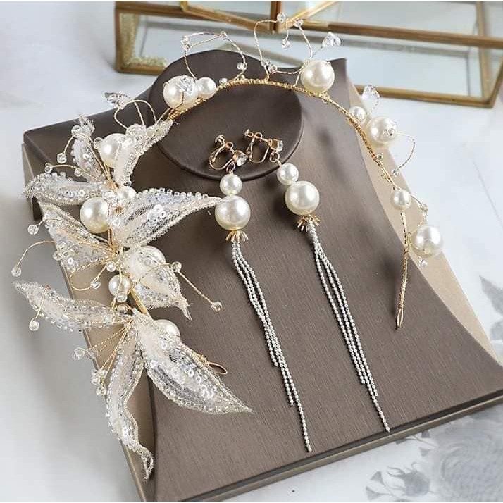 Phụ Kiện Thời Trang > Phụ kiện tóc > Cài tóc, vương miện cài tóc || Bộ cài kèm bông tai siêu xinh Giá chỉ 125k