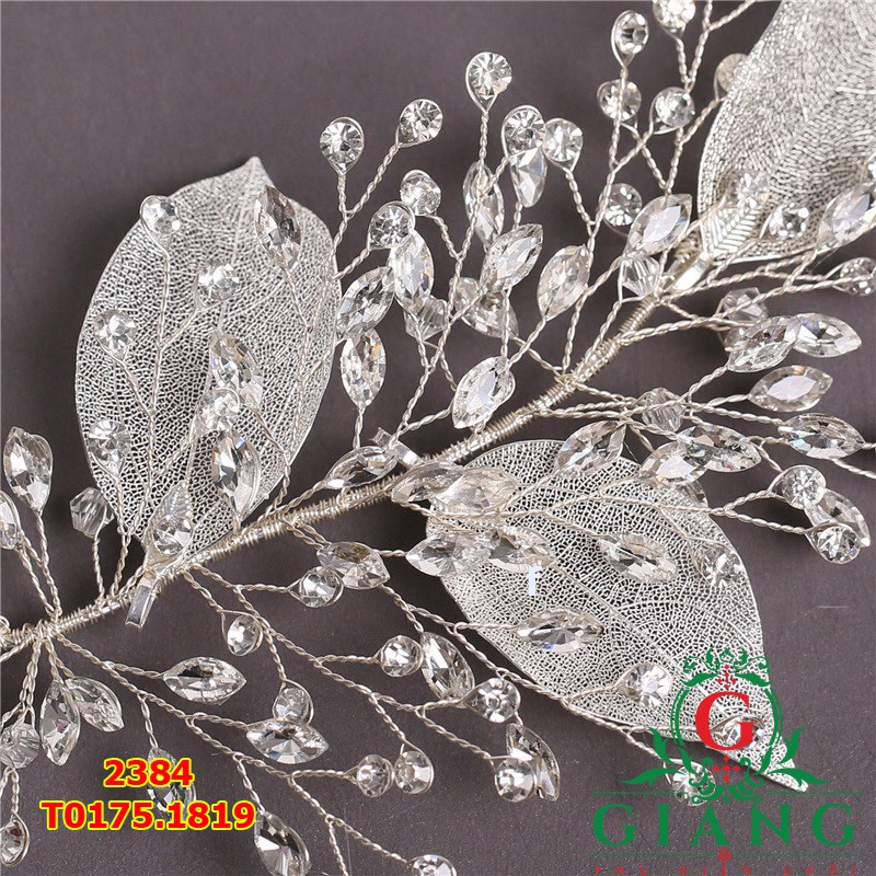 Cài tóc cô dâu lá xi trắng đi đá 2384