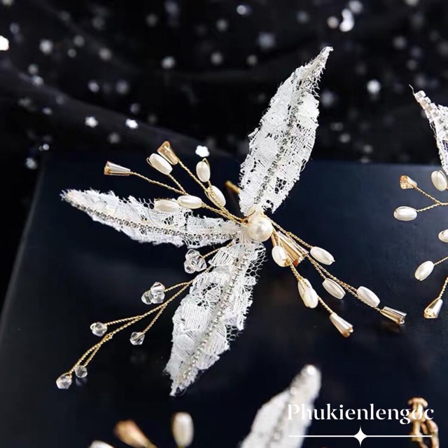 Phụ Kiện Thời Trang > Phụ kiện tóc > Cài tóc, vương miện cài tóc || Cài tóc cô dâu sét ren trắng 5 món