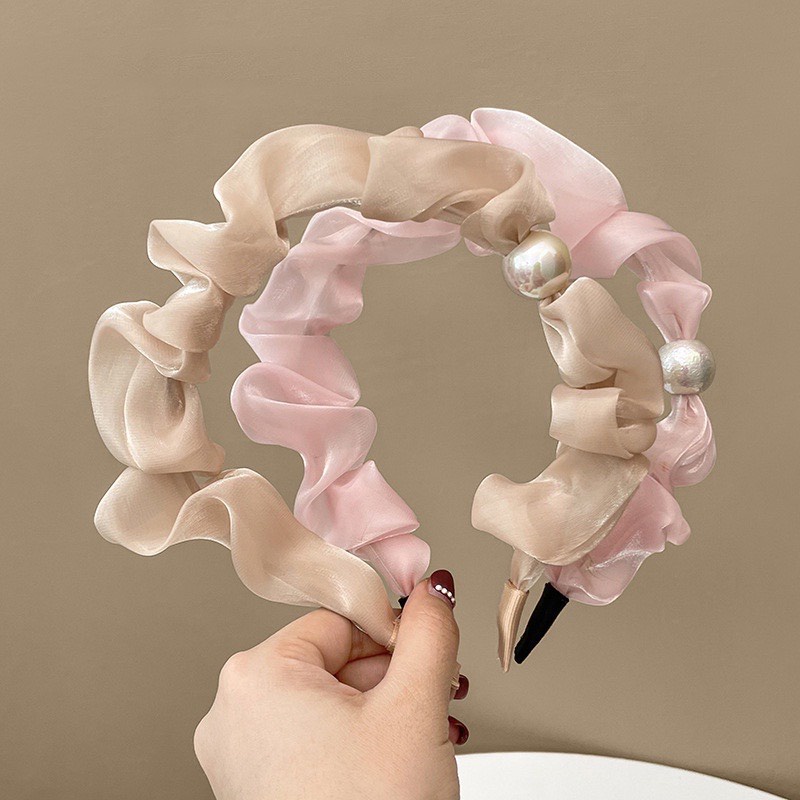 Cài tóc vải voan vệt óng ánh nhiều màu đính hạt ngọc to Hubeshop