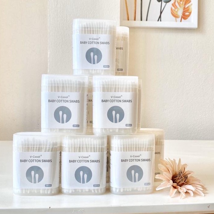 [CAM KẾT CHÍNH HÃNG]Tăm Bông VCOOL Đa Năng, Tăm Bông Vệ Sinh Lấy Ráy Tai Lõi Giấy Hộp 200 Que An Toàn Cho Bé Sơ Sinh. + Mang đến nhiều tiện ích trong vệ sinh an toàn cho bé yêu và sẽ là vật dụng không thể thiếu mọi lúc, mọi nơi