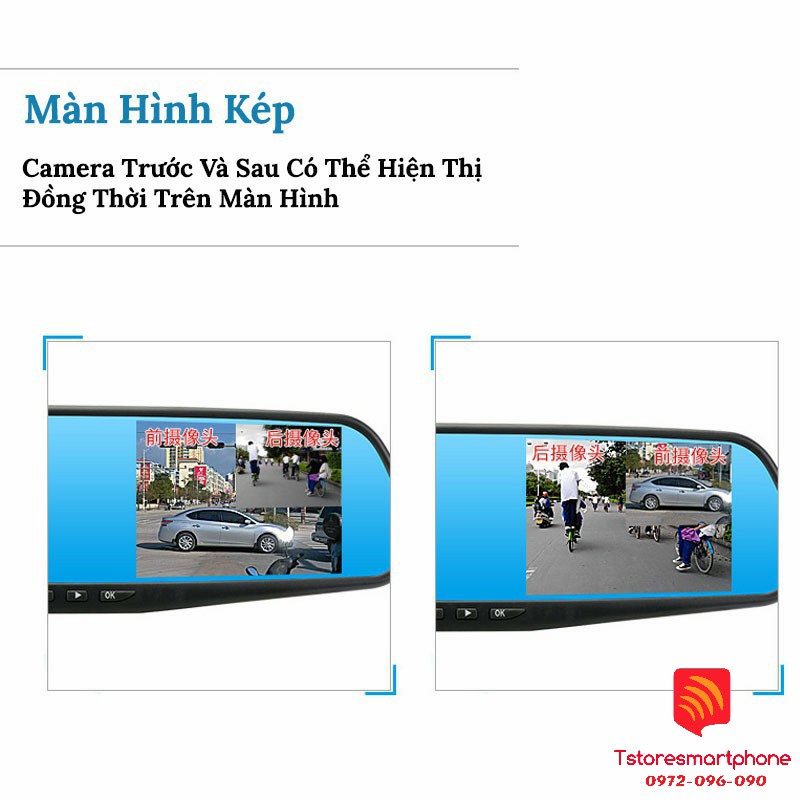 Giới thiệu Camera hành trình gương chiếu hậu Full HD 1080 ghi hình trước sau tích hợp G-Gensor camera lùi tặng kèm camera lùi