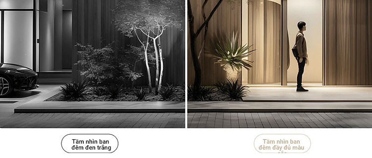 Máy ảnh đi kèm với đèn trắng tự động phát sáng vào ban đêm khi nhận ra hình người, cung cấp hình ảnh có màu trong môi trường tối.