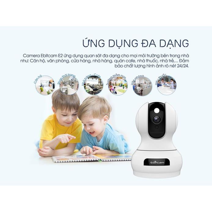Cameras & Flycam > Camera giám sát > Camera giám sát kết nối internet || Camera Wifi Ebitcam E3 Full HD 1080P 2MP - Phát Hiện Chuyển Động, Đàm Thoại 2 Chiều, Xoay 360, Kèm thẻ 32GB/64GB
