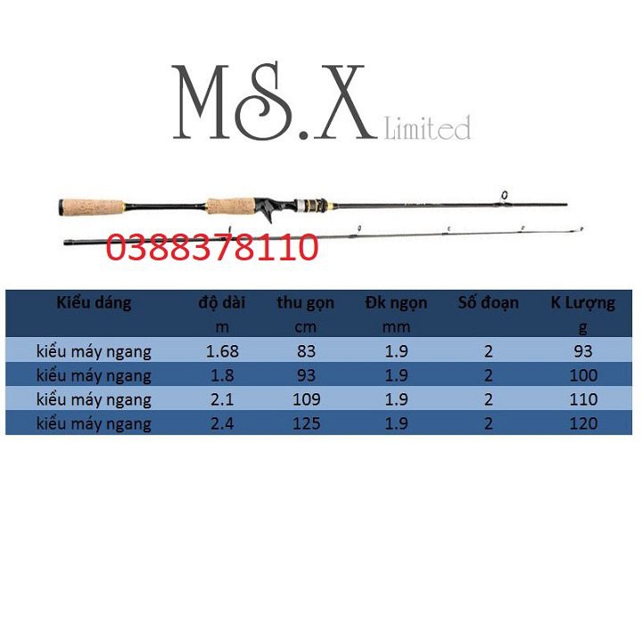 Thông Số Chi Tiết Bộ Cần: - Cần Câu Lure Carbon Kiểu Máy Ngang MSX + Độ Dài: 1.68m - 1.8m - 2.1m - 2.4m + Lure: 10-30g + Line: 8-15Lb + Ngọn Chống Xoắn + Máy Câu Ngang Đỏ Đen Tay Trái Hoặc Tay Phải + Quý Khách Cầm Cần Tay Trái Lấy Máy Quay Bên Phải + Quý Khách Cầm Cần Tay Phải Lấy Máy Quay Bên Trái + Vào Dây: 0.23mm/180m; 0.28mm/150m; 0.30mm/110m - Dây Câu Lure PE SW Dubara Learder - Hộp Mồi Và Bộ Mồi Câu Như Trên Hình.