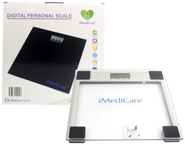 *Thông số sản phẩm: Cân điện tử iMediCare IB 303/310 - Trọng lượng bao bì: 1,5kg - Chất liệu: Bề mặt kính chịu lực - Kích thước màn hình: 6,2cm x 2,6cm - Sai số: 100g/0,2lb - Màn hình hiển thị: LCD - Kích thước: 28cm x 28cm x 2,1cm - Tải trọng tối đa: 150kg - Thương hiệu: Singapore - Sản xuất tại: Singapore - Bảo hành: 6 tháng