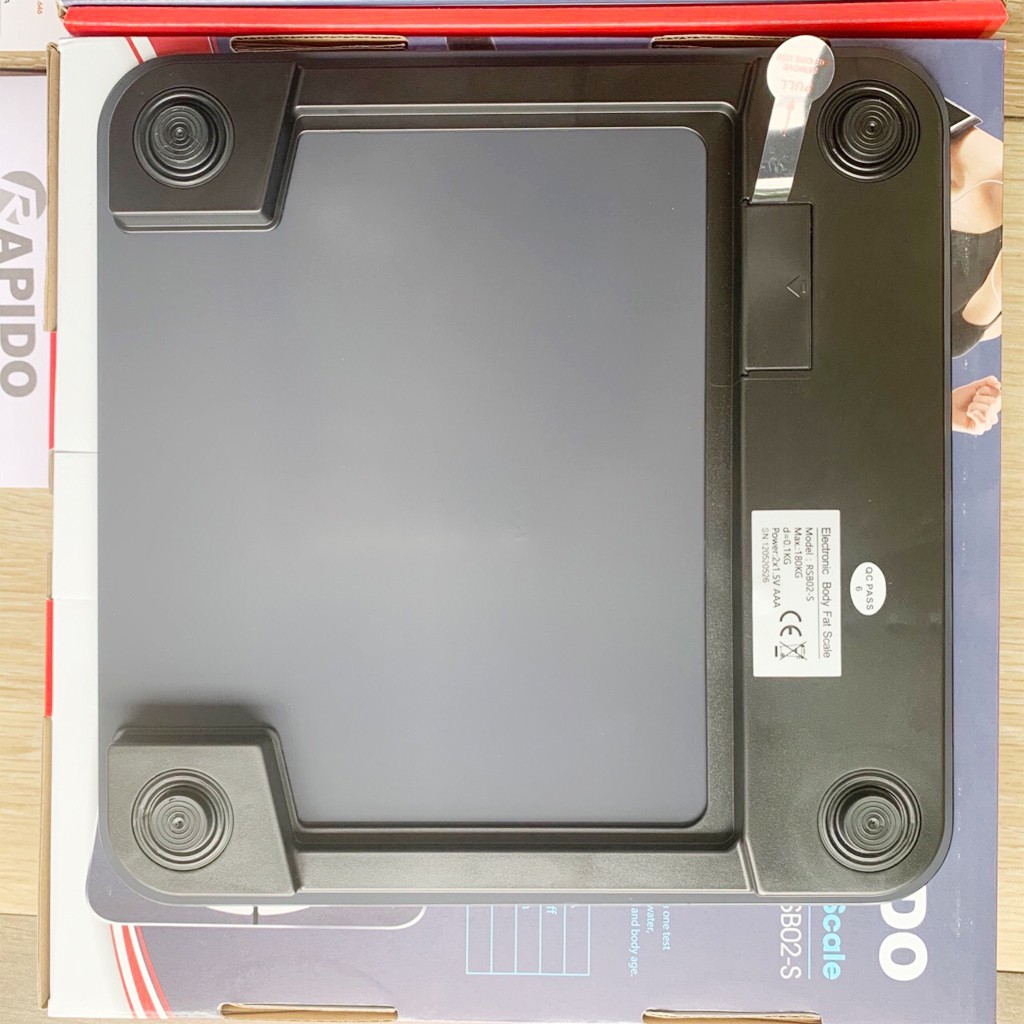 – Cân sử dụng cảm ứng lực với độ chính xác cao – Dễ dàng sử dụng – Ứng dụng phù hợp với nhiều dòng máy khác nhau. - Kết nối với điện thoại 👉Ngoài chức năng cân nặng, Rapido còn có thể đo được các chỉ số bao gồm: BMI, tỉ lệ mỡ cơ thể, mỡ nội tạng, nước cơ thể, tỉ lệ cơ xương, khối lượng cơ, khối lượng xương, protein, BMR (lượng calo tối thiểu cần thiết cho cơ thể), độ tuổi cơ thể. 👉Lợi ích của cân sức khỏe và phân tích các chỉ số cơ thể Rapido – Đọc được các chỉ số cơ thể một cách dễ dàng mà không cần tới các cơ sở y tế hay phòng tập chuyên dụng. – Biết được lượng calo bạn cần hàng ngày là bao nhiêu, từ đó điều chỉnh chế độ ăn phù hợp với chế độ tập luyện của bản thân. – Tầm soát được các nguy cơ có thể xẩy ra với cơ thể thông qua các chỉ số. – Theo dõi và đánh giá được sự thay đổi của các chỉ số cơ thể. – Biết được tình trạng mỡ nội tạng, là tiêu chí rất quan trọng để ngăn ngừa nguy cơ gây nên các bệnh như tiểu đường, mỡ máu, tim mạch. – Biết độ tuổi sinh học của cơ thể. - Thiết kế nhỏ gọn, tinh xảo phù hợp sử dụng cho gia đình. Cân Rapido RSB03-S có thiết kế hình vuông giúp cân cân bằng hơn, giảm thiểu tối đa nghiêng, lật khi bước lên cân. - Thiết kế nhỏ gọn và thuận tiện cho việc cất giữ. Chỉ một khoảng trống nhỏ trong nhà như gầm tủ, kệ tường cũng là địa điểm lý tưởng để cất giữ cân. - Mặt kính cường lực sang trọng với độ dày lên tới 6mm khả năng chịu lực cao tạo cảm giác an toàn cho người dùng. - Màn hình LCD lớn