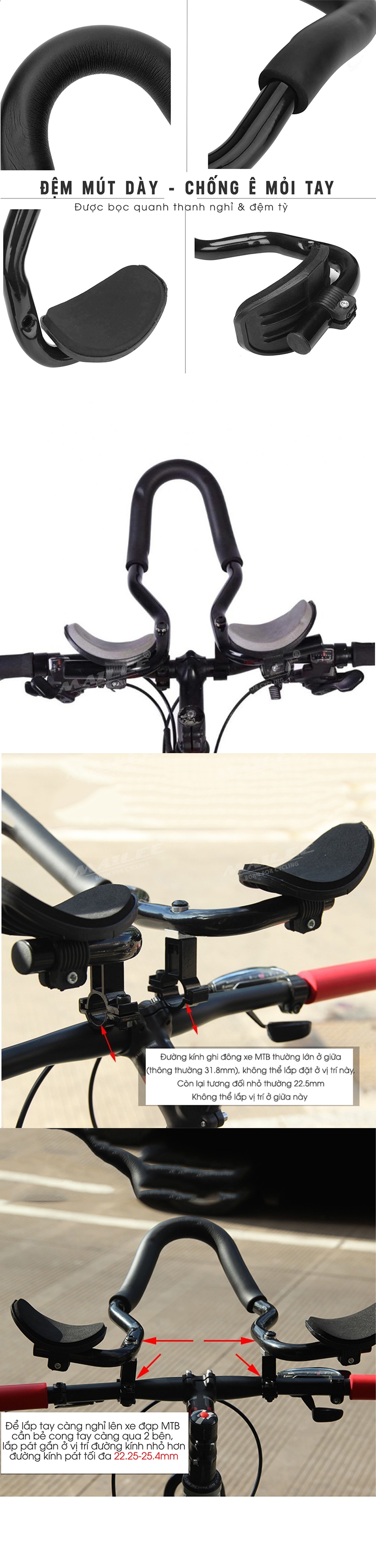 Tay càng nghỉ TT, Thanh Tay Lái Cho Xe Đạp Chất Liệu Nhôm, Tay Cầm cho ba môn phối hợp cho xe đạp thể thao trọng lượng nhẹ (Dài 37cm) - Mai LeeThiết kế công thái học giúp các thanh Aero phù hợp với ...