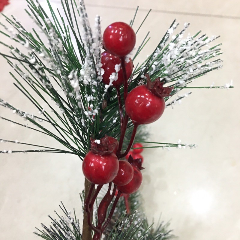 Cành thông trang trí Noel Giáng sinh Năm mới Kích thước: dài 55cm Màu sắc: Nhiều màu Hiện shop có nhiều mẫu để bạn lựa chọn Cành thông phủ tuyết đã gắn sẵn phụ kiện như quả thông, cherry, quả diệu,... Dùng để trang trí lọ hoa Giáng sinh cho ngôi nhà của bạn thêm ấm cúng và rực rỡ