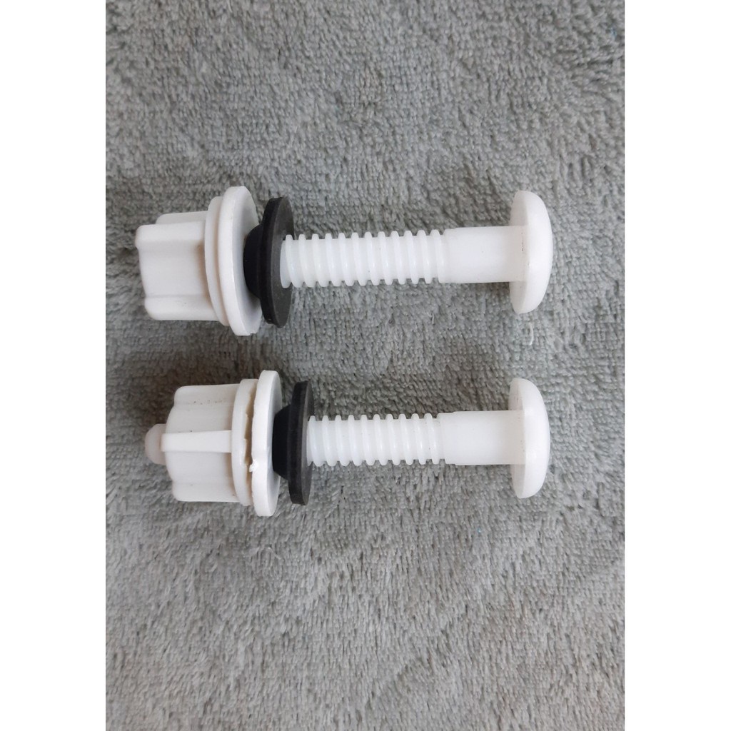 Một cặp (2 con) ốc thùng nước bồn cầu, ốc két nước bồn cầu 2 khối Ốc này dùng để lắp két nước với thân bàn cầu 2 khối vào với nhau. Thay thế khi bồn cầu nhà bạn bị gãy ốc thùng nước hoặc thùng nước không cố định, lúc lắc khi đụng vào là do ốc thùng nước bị chạy ren. Chất liệu: Ốc bồn cầu sản xuất bằng nhựa loại tốt trắng trong, ốc thùng nước bằng nhựa dùng cho mọi nguồn nước ( nước phèn, nước mặn...) mà không lo bị hoen rỉ. Dùng chất liệu nhựa trong môi trường có nước để không bị rỉ. Dùng các loại ốc bằng sắt bị rỉ ạ. Độ dài 8cm các bạn nhé Ốc chốt dành cho các loại bồn cầu thông dụng 2 khối như Viglacera,Inax , Caesar, Toto, American Standard, Kích cỡ tiêu chuẩn lắp vừa hầu hết két nước bồn cầu (ốc tròn) Thao tác thay thế: đơn giản, chỉ cần tay không có thể tháo và lắp được Lưu ý: Khi mua phụ kiện thay thế, bạn vui lòng so sánh hình ảnh sản phẩm với sản phẩm bạn đang dùng để mua được loại chính xác nhất #oc, #ocboncau, #boncau #octhung #ocketnuoc