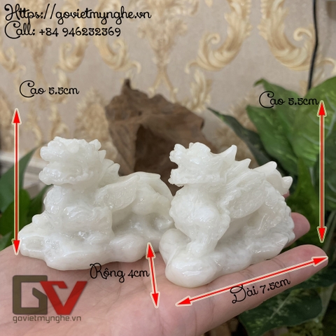 Cặp 2 Tượng đá Tỳ Hưu trang trí phong thủy nhà cửa - Màu trắng non nước - Cỡ nhỏ dài 7.5cm