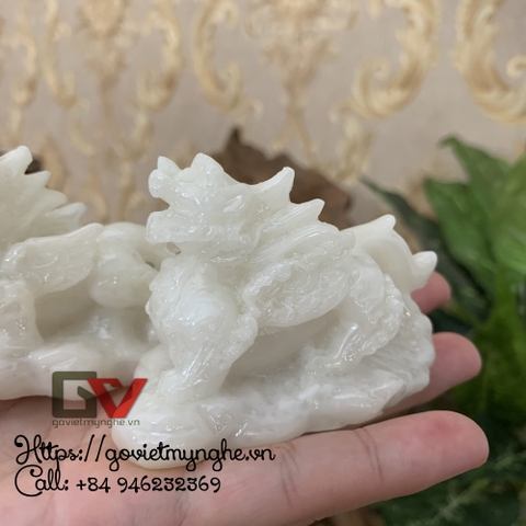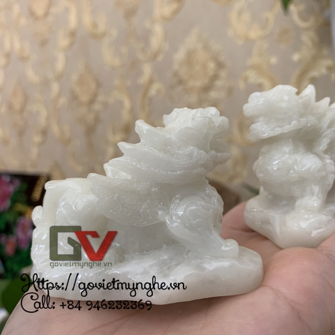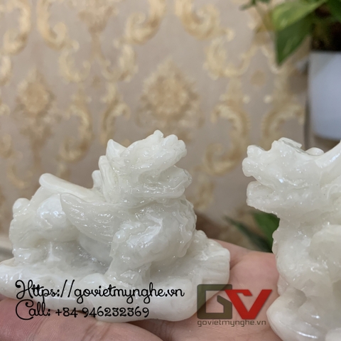 + Cặp 2 Tượng đá Tỳ Hưu trang trí phong thủy nhà cửa - Màu trắng đá non nước - Cỡ nhỏ dài 7.5cm