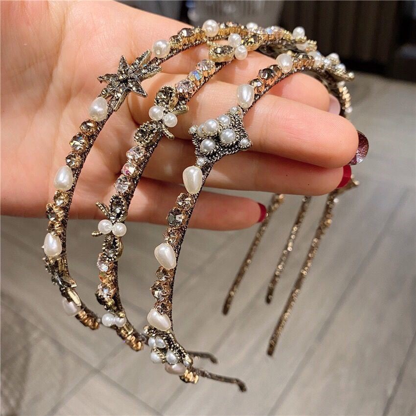 Băng đô cài tóc bờm tóc đính đá sang chảnh tiểu thư phụ kiện tóc No.93