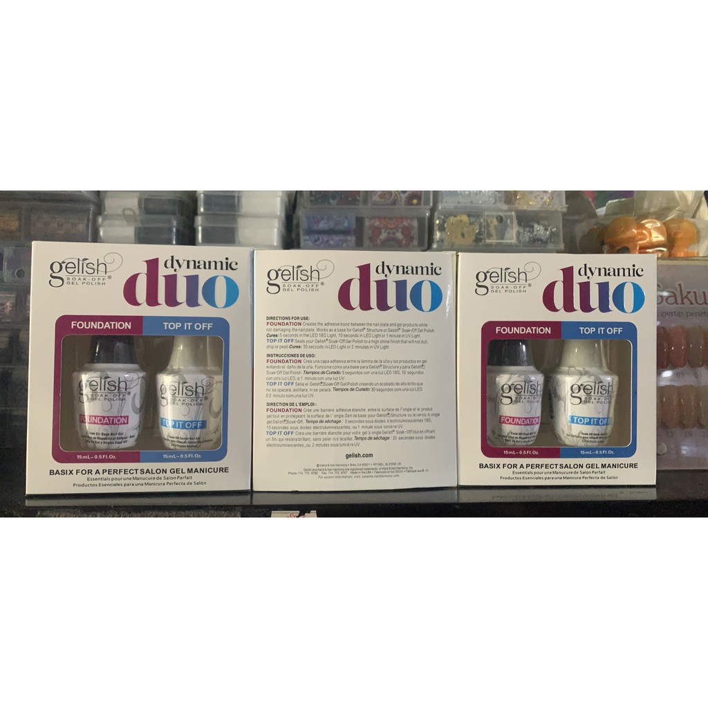 Cặp Base - Top Gelish Gel Polish Cực Bền và Bóng Đẹp Đây là giá của 1 cặp, gồm 1 chai Base và 1 chai Top. thể tích: 15ml*2 Xuất xứ: Mỹ Được đánh giá 1 trong những loại base gel và top gel tốt nhất hiện nay Giá: 120k cặp tương đương 60k chai.. Shop ko bán lẻ