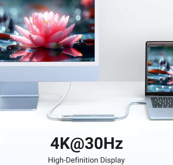 Màn hình 4K tuyệt đẹp: USB-C Hub 5 trong 1 Ugreen 35581 Cổng HDMI hỗ trợ hiển thị phương tiện ở độ phân giải lên đến 4K 30Hz, giữ mọi khoảnh khắc đáng kinh ngạc chi tiết và cực kỳ sống động. Xin lưu ý rằng cổng C của thiết bị chủ cần hỗ trợ đầu ra video
