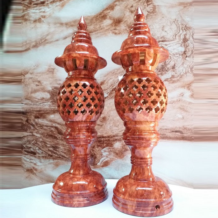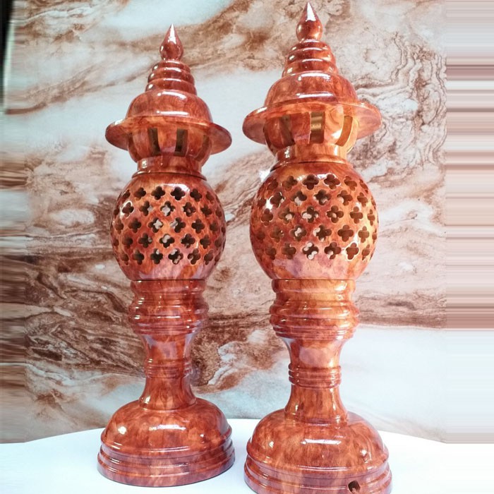 - Cặp đèn được làm từ gỗ xà cừ nguyên chất