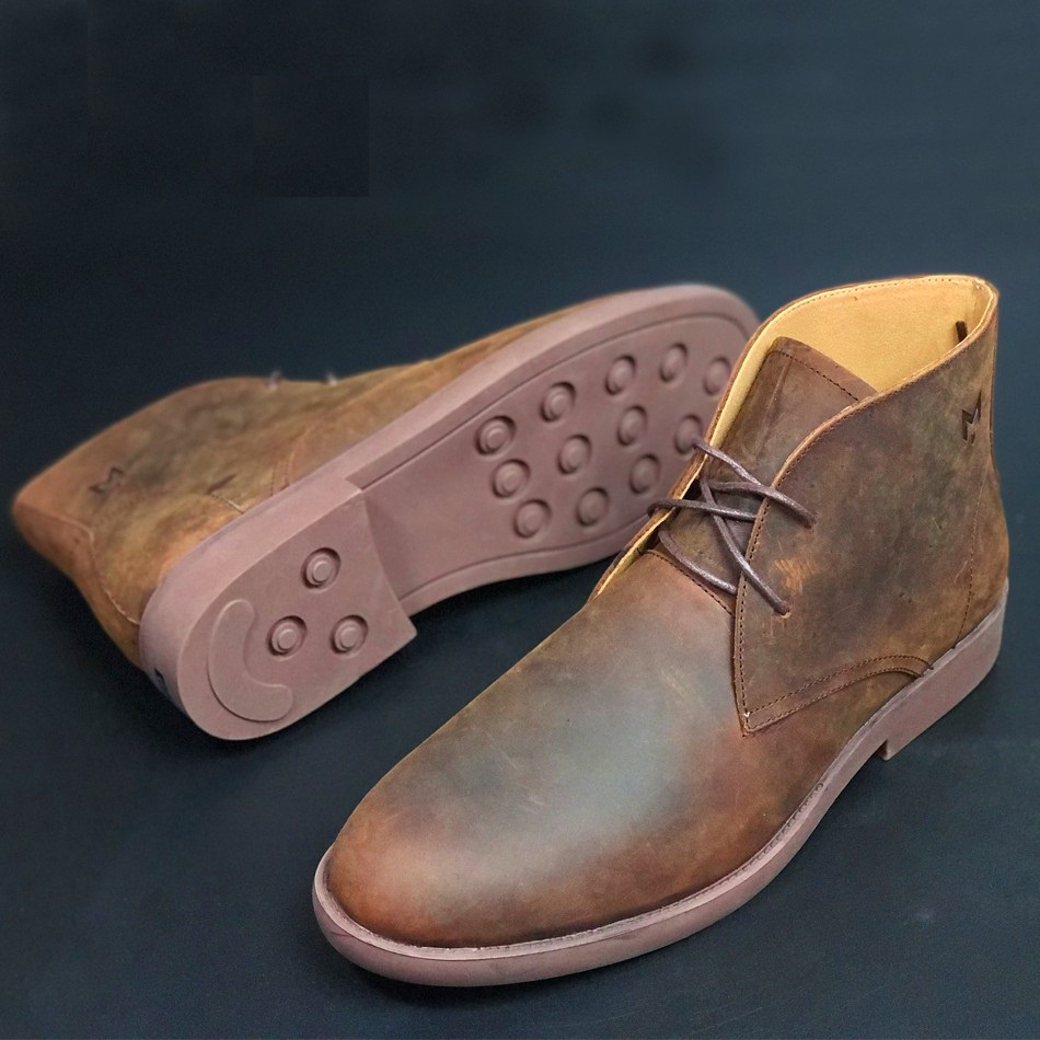 Giới thiệu [ Cao Cấp] Giày boots Nam Cổ Lửng Da Sáp Ngựa Điên Chukka Boots Phong Cách Bụi Bặm