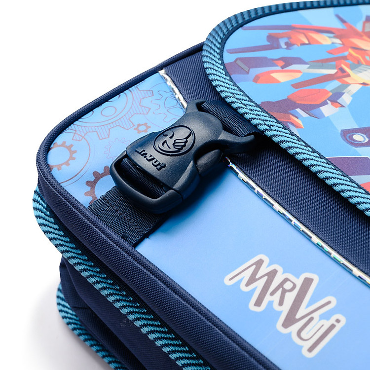 Để hỗ trợ an toàn cho bé khi đi học vào ban đêm, cặp 503được thiết kế kèm theo những dây phản quang được bố trí ở bề mặt cặp, 2 bên ngăn nước và quai đeo phía sau. Khóa bấm phía trước được thiết kế chắc chắn, giữ sách vở bên trong không bị xô lệch, bung ra khi các bé vui chơi.