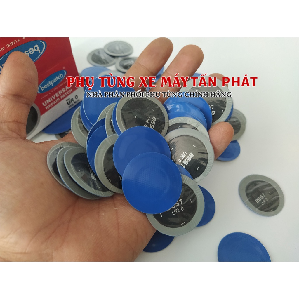 Giới thiệu [Cao Cấp] Hộp 100 miếng Tròn 35mm Vá Vỏ - Ruột Xe Đạp Xe Máy Ô Tô Chính Hãng Bestpatch Made INDIA ( ẤN ĐỘ)