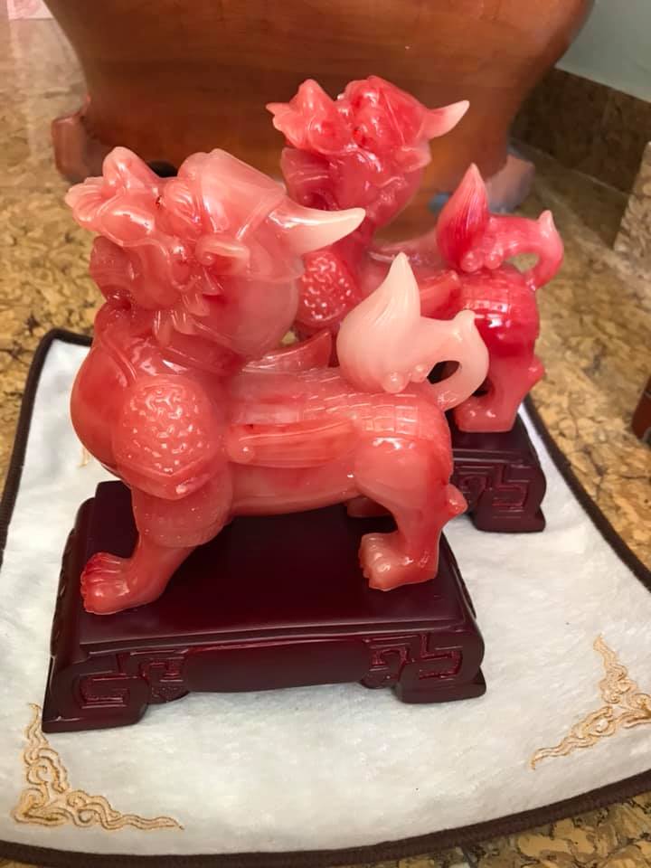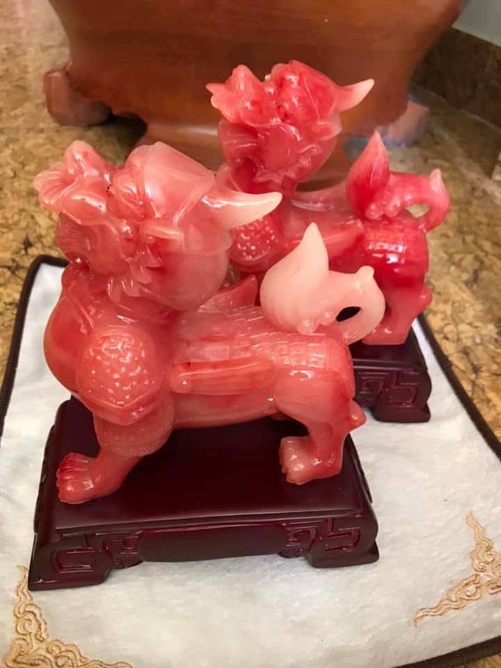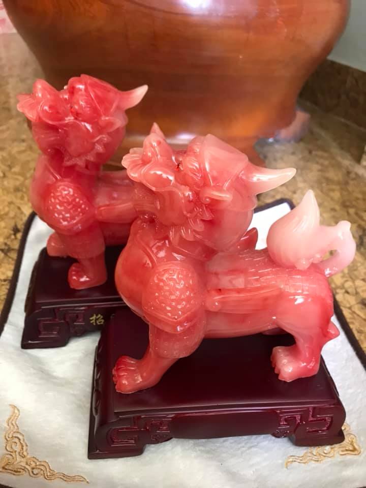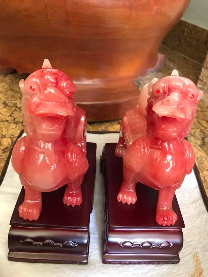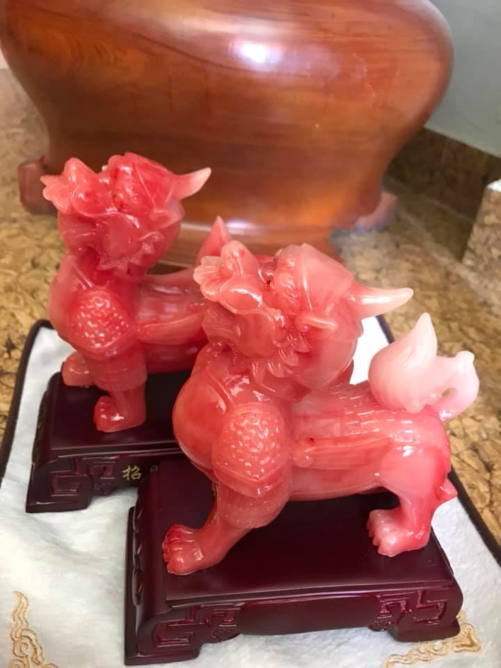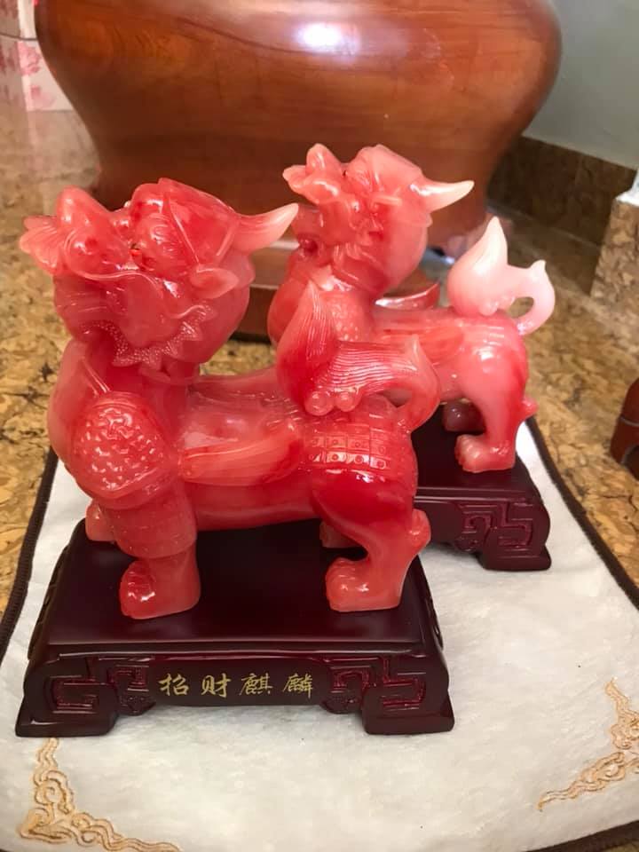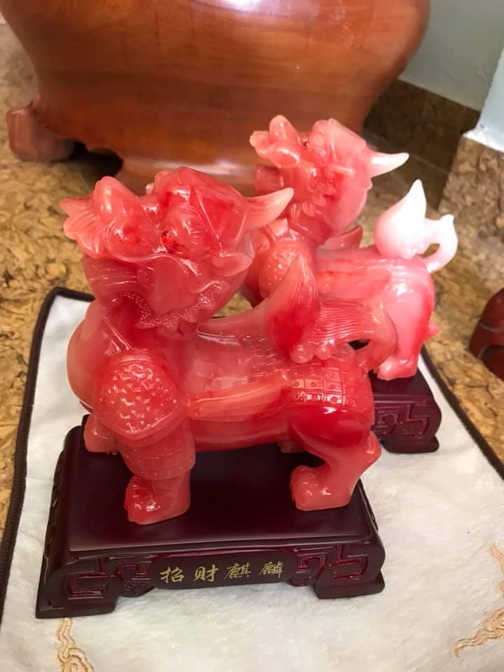 CẶP KỲ LÂN ĐỎ ĐẾ GỖ CAO 20Cm x Dài 17cm x Ngang 9cm