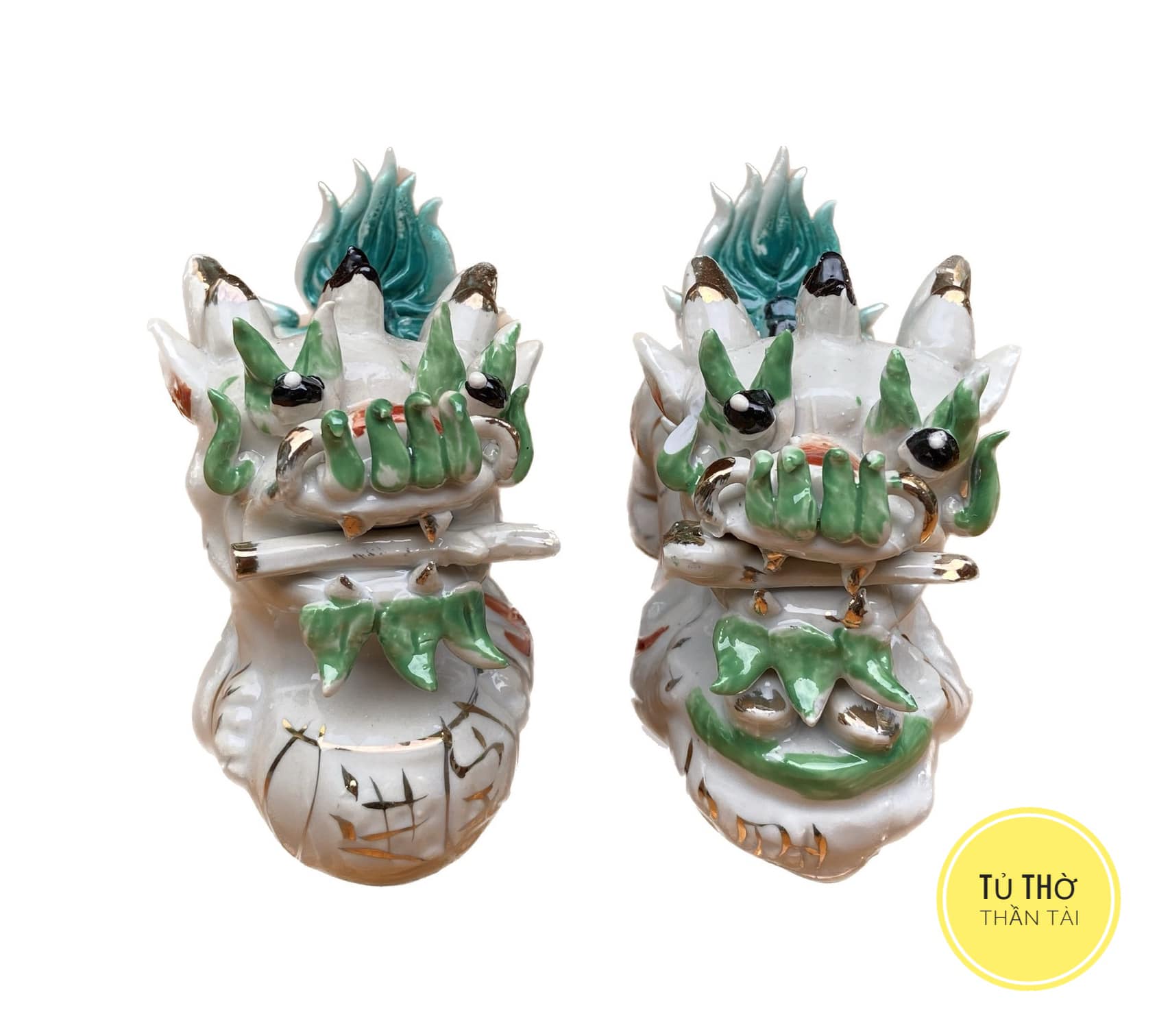 - Cặp Kỳ Lân trung: kích thước 1 con: chiều rộng 12cm x chiều sâu 7cm x chiều cao 9cm