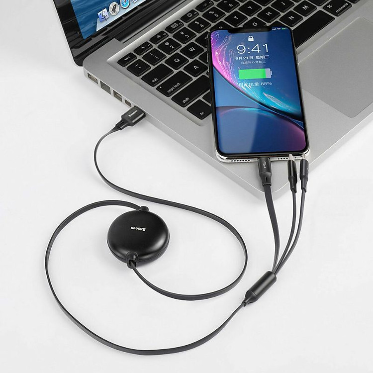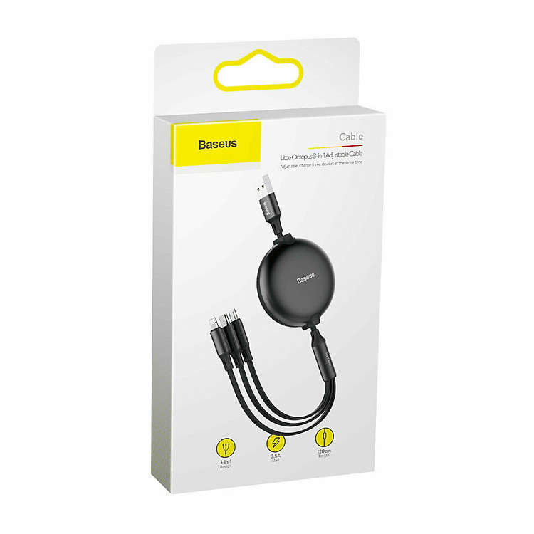 Cáp sạc BASEUS CAMLT-ZY 1.2M 3 in 1 Little Octopus dây rút, Light-ning & Micro & Type-C- Hàng Chính Hãng