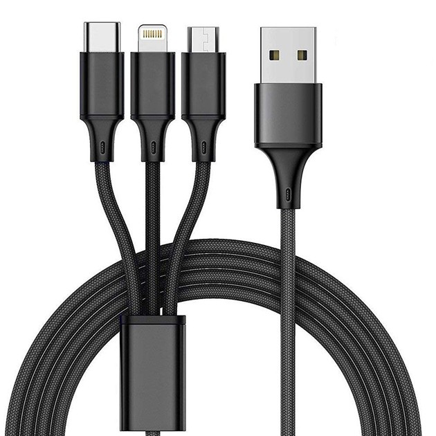Cáp Sạc Điện Thoại Nhanh Tiện Ích Với 3 Cổng Ra Dây Dù 3 in 1