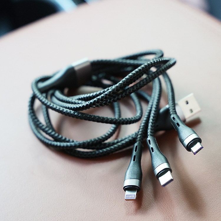 - Cáp Sạc Nhanh 3 Đầu (USB to Type C/ Light.ning/ Micro, 8A/160W Sạc Nhanh & Cáp Dữ Liệu) CIND CNY-A1 với thiết kế sang trọng đa năng, có thể sử dụng cho nhiều loại điện thoại trên thị trường. Chất lượng sạc ổn định, tốc độ sạc nhanh giúp bạn an tâm trong quá trình sử dụng. Kiểu dáng nhỏ gọn, dễ dàng tương thích với nhiều loại cốc sạc hay đầu ghim USB, sạc dự phòng.