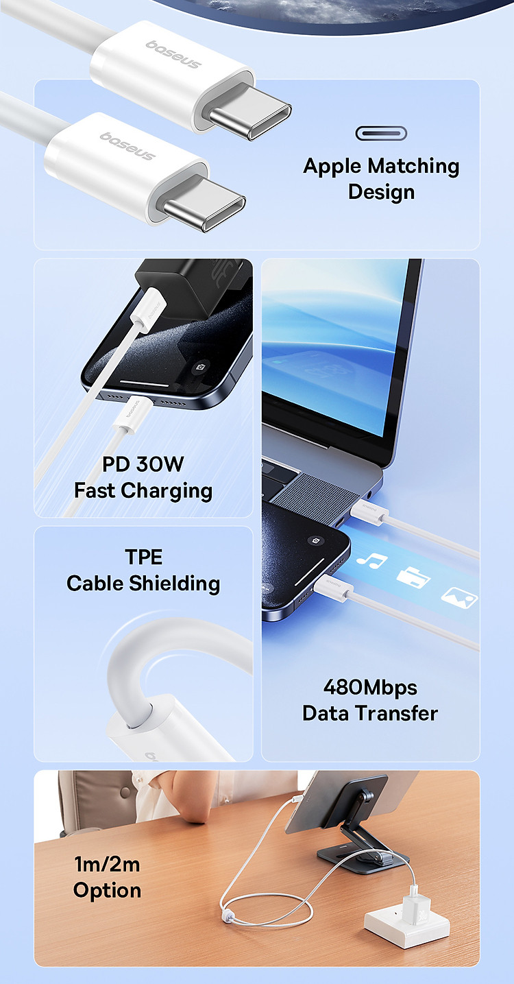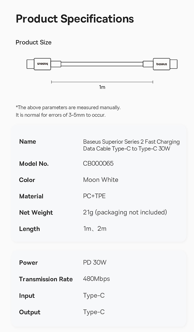 | Tên | Cáp Sạc Nhanh Baseus Superior Series 2 Fast Charging Data Cable Type-C to Type-C 30W |